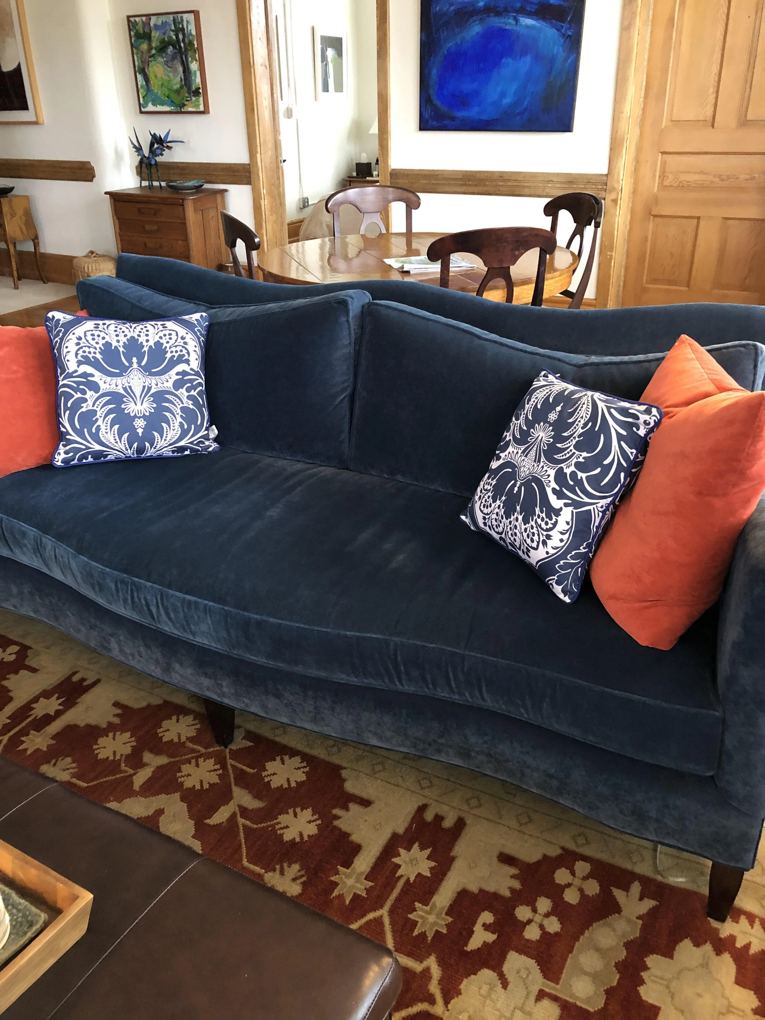 Tell me these blue pillows aren’t too-too. Jerry says he’s “getting used to them.”